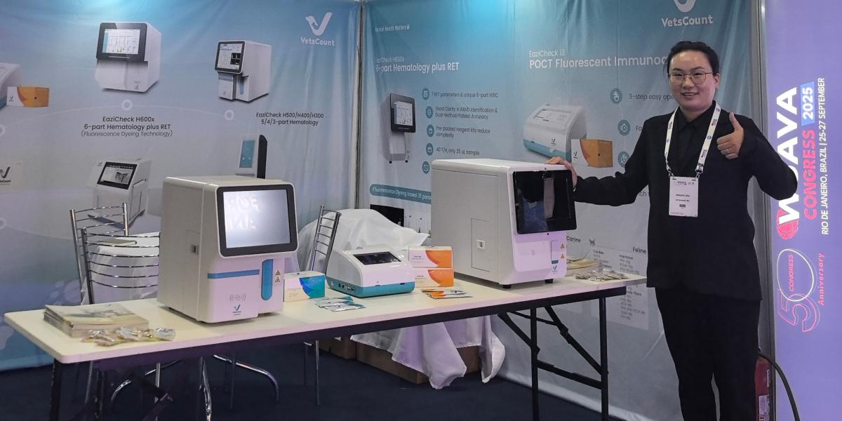 At Booth 123, VetsCount presented its comprehensive portfolio of veterinary diagnostic solutions, including hematology analyzers, POCT chemistry systems, electrolyte analyzers, fluorescent immunoassay systems, and rapid test kits. These solutions are designed to support accurate, efficient, and accessible diagnostics in daily clinical practice.